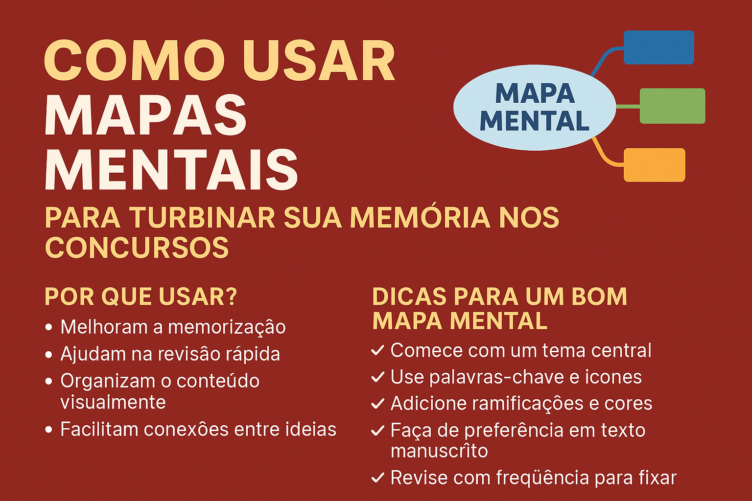 A revisão regular do conteúdo ajuda a fixar o conhecimento. Utilize ferramentas como mapas mentais para facilitar essa revisão.